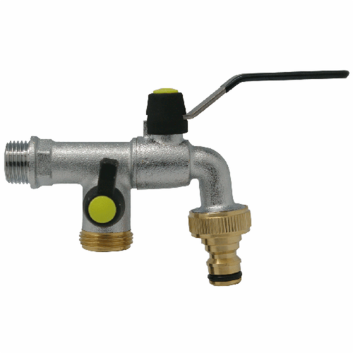 L'aixeta doble està especialment ideat per a la instal·lació d'un programador. La clau de tancament de la sortida posterior s'independitza el programador de la sortida principal.