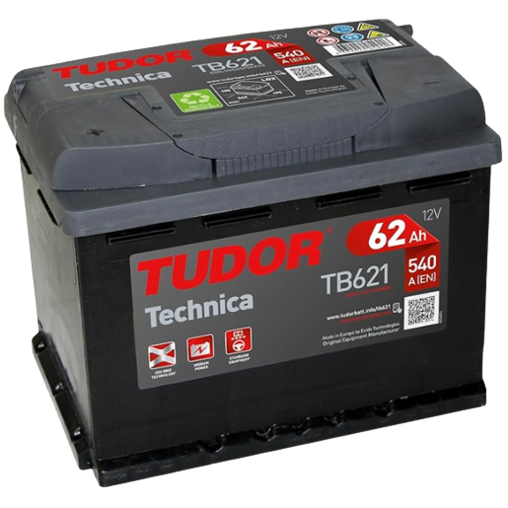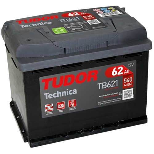 BATERIA TUDOR TECHNICA. Tensió: 12V. Capacitat bat.: 62 Ah. Corrent prova fred, NE: 540 A, Dimensions: 242X175X190mm. Disposició pols: + Esquerra. C-49965