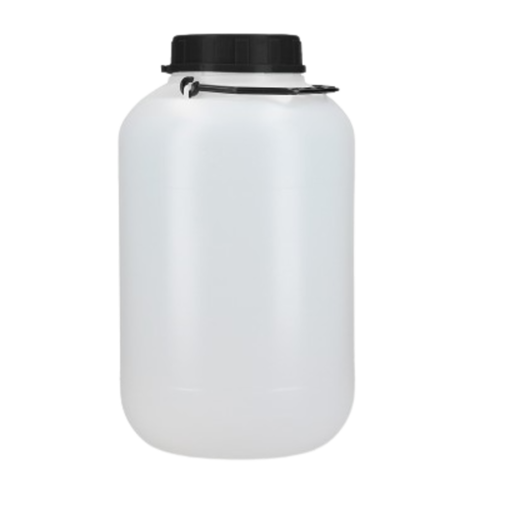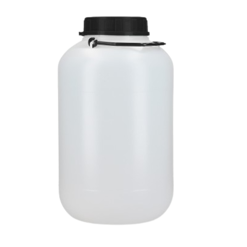 Bidó de plàstic de 5 litres amb nansa i tapa amb obturador, fabricat en polietilè. Apte per a ús alimentari.