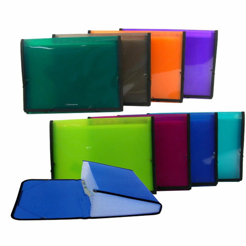 Carpeta classificadora en polipropilè, amb 12 separadors, amb gomes, 8 colors. El color dependrà de les existències que hi hagi en el moment de preparar la comanda.