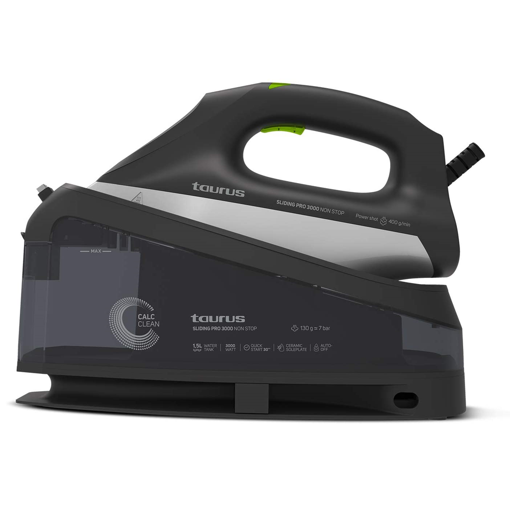 ESCALFAMENT RÀPID: estalvia temps i esperes amb Sliding Pro 3000 Non Stop. Els seus 3000W de potència escalfaran la resistència interna de forma ràpida. Vapor llest en tan sols 30 segons.