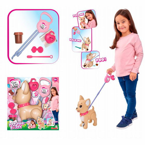 Chi Chi Love és una joguina que sembla un gosset reial: dona-li algunes llaminadures de plastilina com a recompensa, i en treure'l a passejar farà caca de veritat.