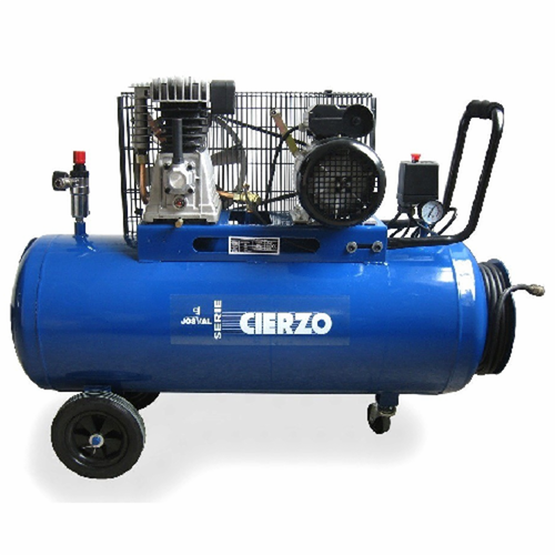 DESCRIPCIÓ DEL COMPRESSOR 220 V PER CORRETGES JOSVAL 2 CAVALLS 100 LITRES MODEL: C-2 / 100M -BV-capçal COMPRESSOR: Bv-2- Desplaçament d'aire: 280 l / min- Pressió: 10 bar- Temperatura màxima ambient: 40 ° C Contingut d'oli: 0,6 l- Rpm: 1020MOTOR ELÈCTRIC: Monofàsic- Potència estimada: 1,5 Kw = 2 CV Voltatge / Freqüència: 230 V - 50 Hz- Rpm estimades: 2.880DEPÓSITO: 100 litres- Pressió de disseny: 12 bar- Homologació 2009/105 / CEEQUIPAMIENTO ESPECIAL: - Accionament per corretges- Arrencada per pressòstat amb manòmetro- Regulador de pressió amb manòmetre i doble connexió amb endoll ràpid- Capçal amb cilindre de fosa- Placa de vàlvules de làmines- Disjuntor tèrmic de protecció de motor-Suport per enrotllar mànega d'aire- Kit mànega d'aire de 5 metres amb endoll ràpid i conector- Roda davantera massissa engomada i pivotant (Ø75) - Rodes del darrere massisses i engomades antivibracions (Ø200) - Protector de corretges de malla electrosoldada- Nansa ergonòmica per a transport i fàcil maneig.