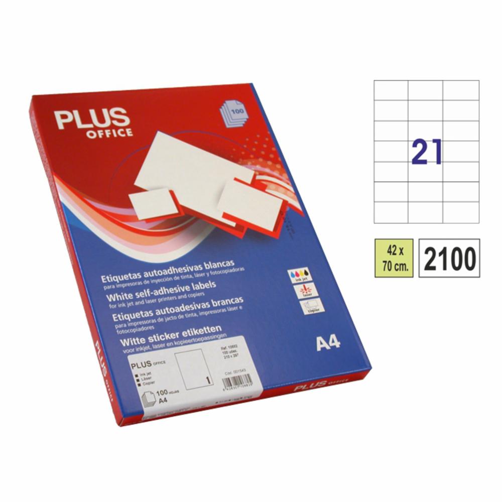 Etiquetes autoadhesives blanques en format A4 especials per a impressores inkjet, làser i fotocopiadores, cants rectes, format de les etiquetes predefinit en la majoria dels programaris, caixa de 100 fulls, 2100 etiquetes.