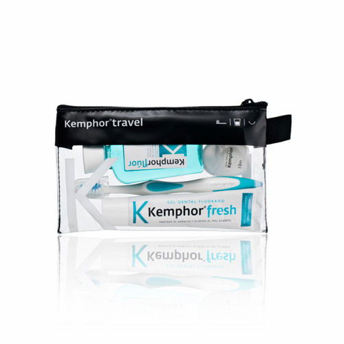 Conté: esbandida bucal fluorat 50 ml., Seda dental 10 metres, raspall de dents mida viatge i gel dental fluorat 25 ml.