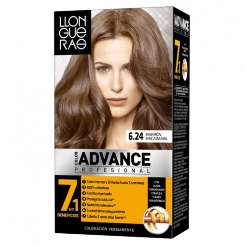 Color intens i brillant fins a 5 setmanes. 100% cobertura. Facilita el pentinat. Protegeix la cutícula. Nutrició intensiva. Control de l'encrespament. Cabell 2 vegades més fort. Color marró macadàmia.