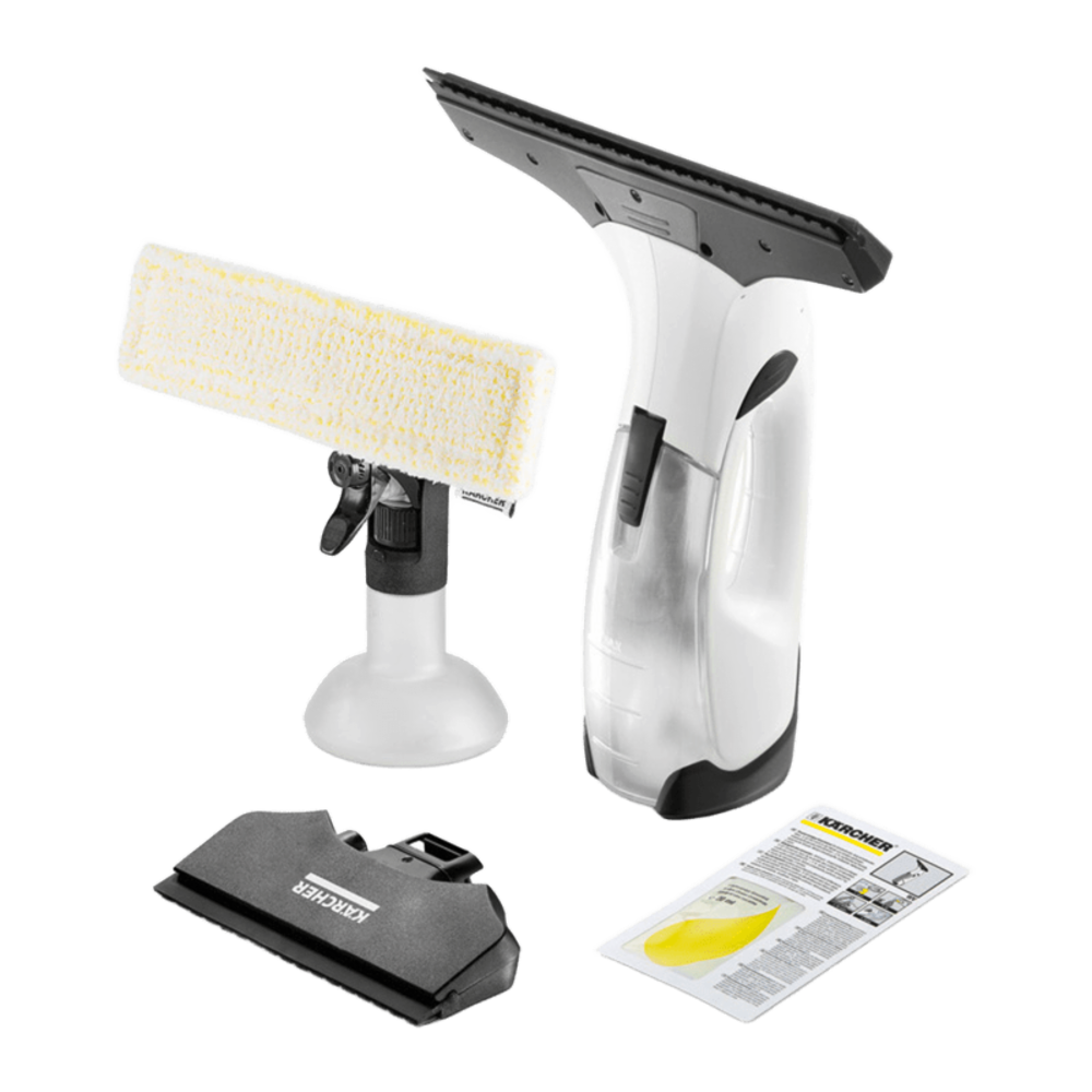 Amb la innovadora netejadora de cristalls, Kärcher ha revolucionat la neteja de finestres. La netejadora de cristalls a bateria original de Kärcher converteix la neteja en una tasca molt senzilla, alhora que estalvia molt temps i esforç. Gràcies al sistema d'aspiració elèctric, el molest degoteig és cosa del passat. La intel·ligent combinació d'ampolla polvoritzadora i drap de microfibres, així com la funció d'aspiració de la netejadora de cristalls, garanteixen una neteja summament eficaç i unes finestres netes i brillants sense marques ni residus. A més, la netejadora de cristalls a bateria de Kärcher, que destaca pel seu fàcil maneig i la seva ergonomia, permet netejar les finestres de forma especialment higiènica, ja que no es produeix cap contacte directe amb l'aigua bruta. Gràcies al filtre aspirador estret addicional, també pot arribar-se sense esforç a zones més petites o de difícil accés, com les que presenten les finestres amb travessers o les vitrines. D'aquesta manera, la neteja ja no té límits.