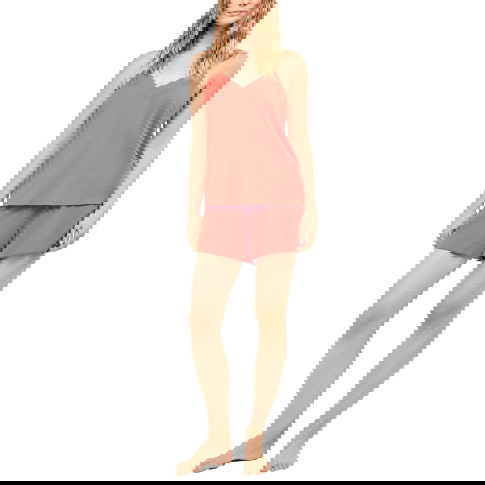 Conjunt de dues peces compost per top + short en teixit modal aportant fluïdesa i suavitat. Top amb tirant fi ajustable amb detall creuat a l'esquena i short curt regulat amb llaç davanter. 50% cotó, 50% modal