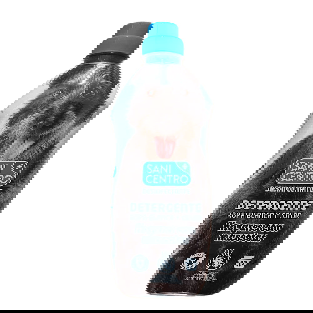 Detergent desinfectant Sani Centro per a roba blanca i de color. Especialment formulat per a llars amb mascotes. Elimina olors i bacteris, deixant la roba neta i fresca. Cura i higiene en cada rentada.