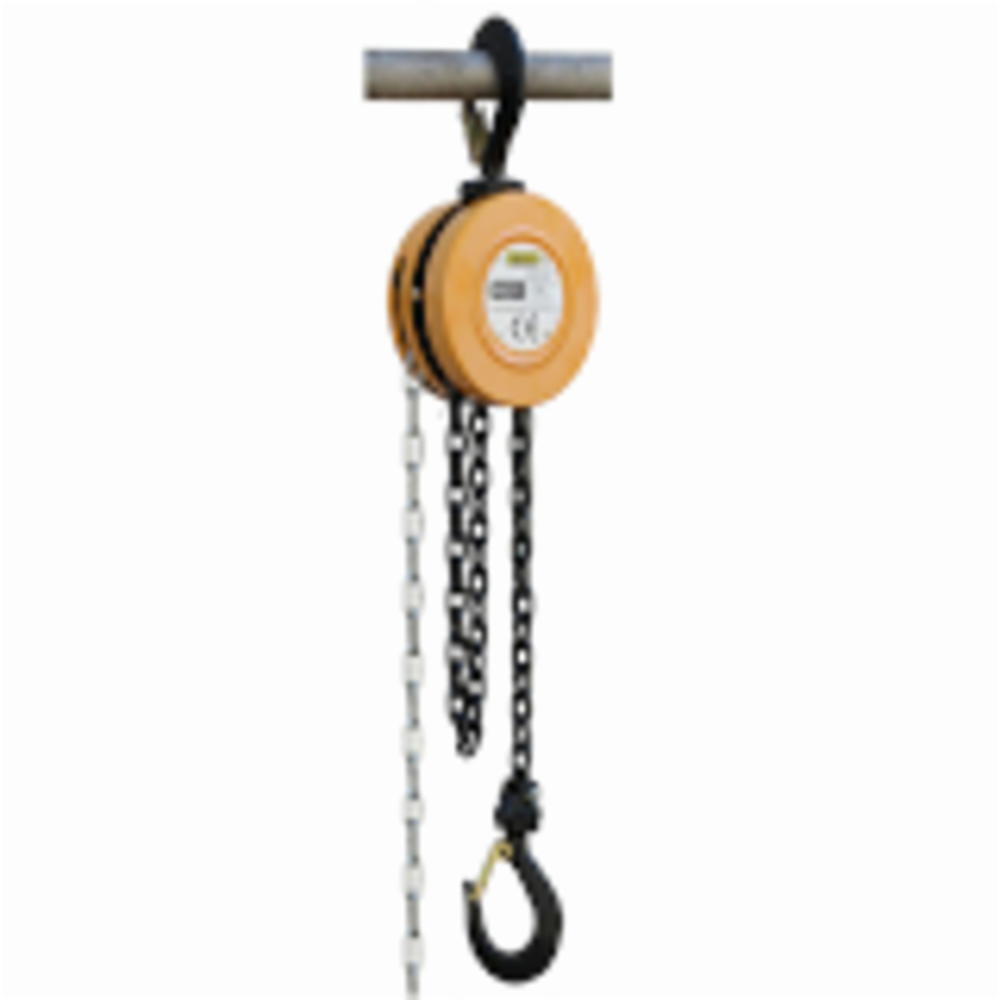Càrrega màxima 1000 kg.Elevació: 2,5 m.Diàmetre cadena: 6 mm.Mesures: 300 x 240 x 180 mm.Pes: 10 kg.