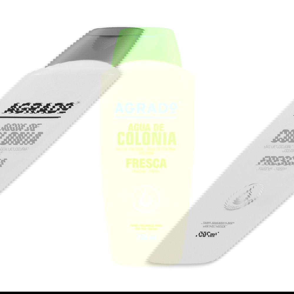 La Colonia Fresca AGRADO deja tu piel fresca y perfumada con el aroma de siempre. Perfume duradero de alta calidad, ideal para el cuidado diario de toda la familia. Dermatológicamente testado.