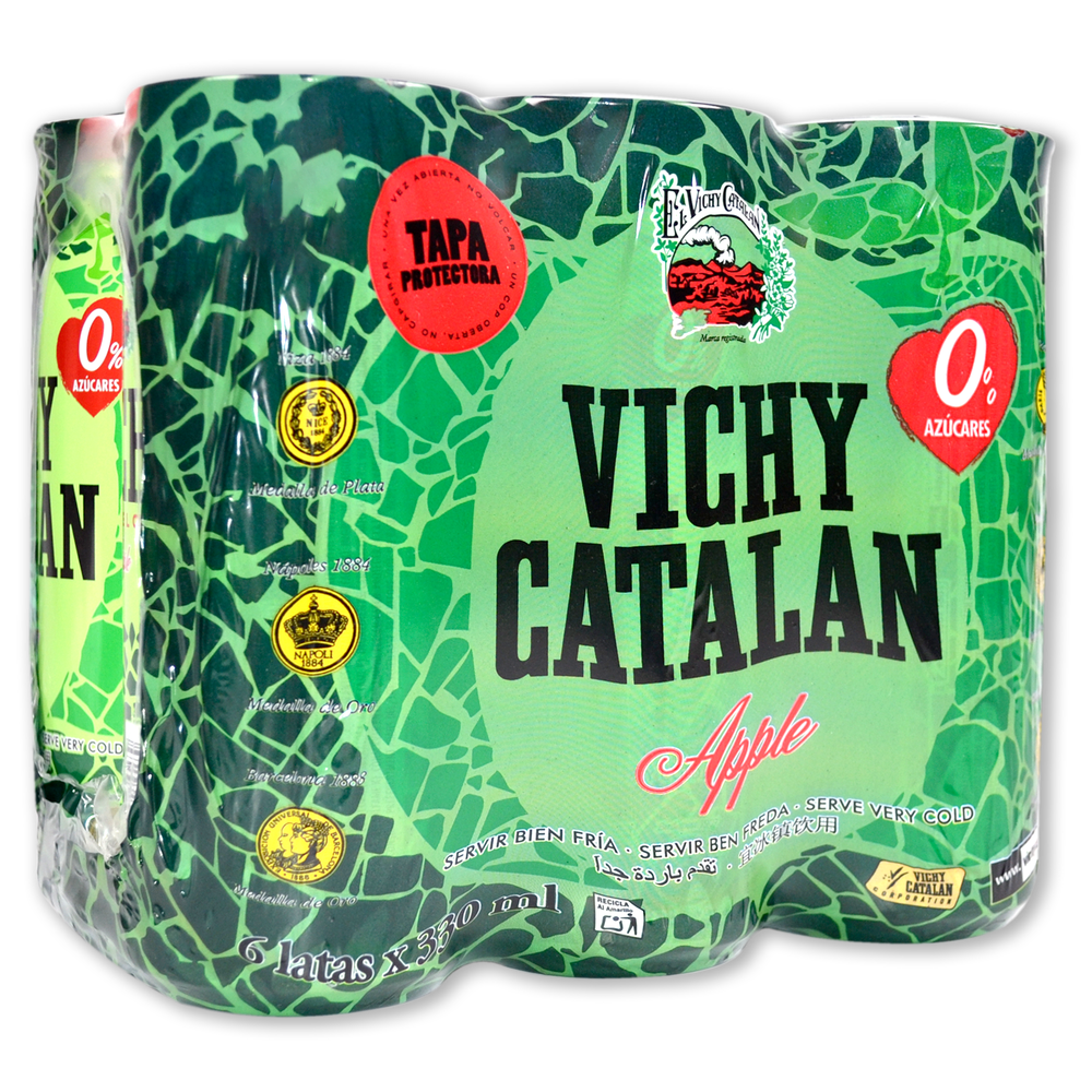 Agua con gas sabor manzana Vichy Catalan paq. de 6 llaunes