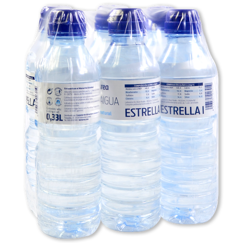 Agua formato dePET 33 cl. con tapón sport.