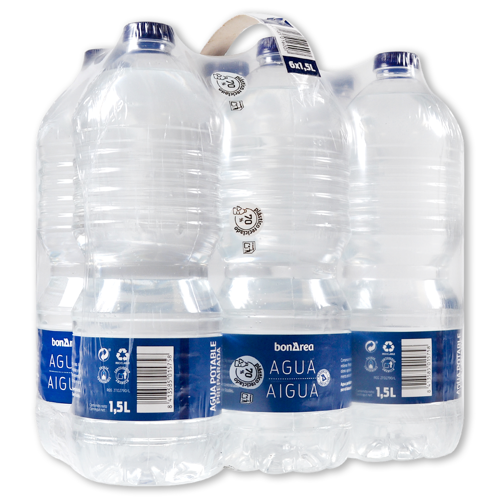 Agua formato PET 1,5 litros.