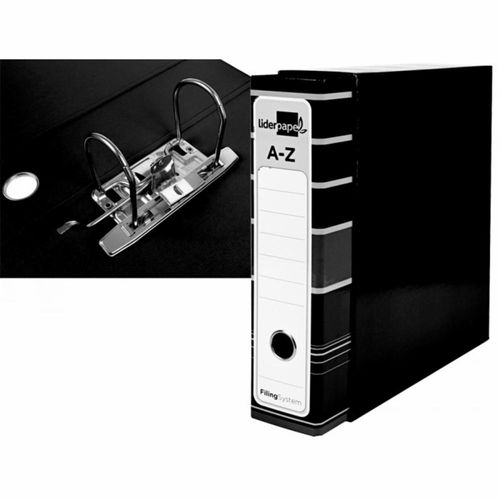 Archivador Liderpapel de color negro A4 con anillas + caja.