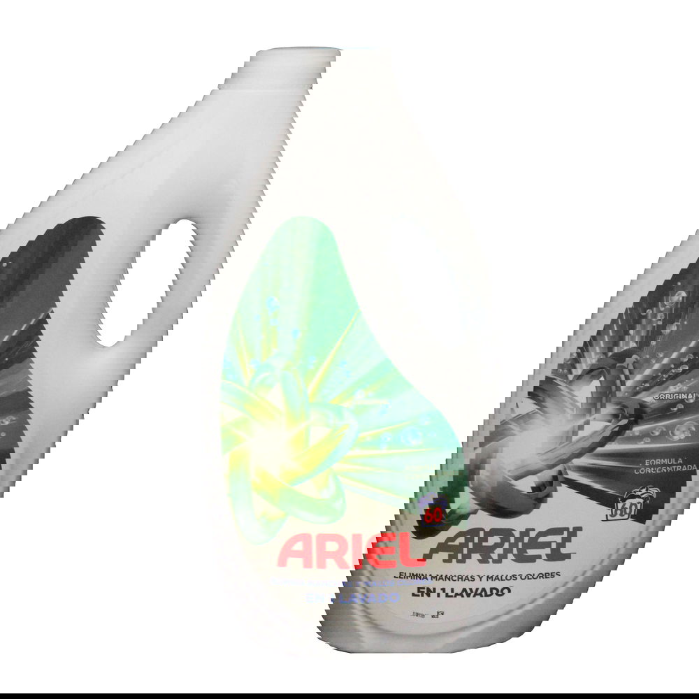 El detergente líquido para lavadora de Ariel proporciona 5 acciones para una limpieza increíble proporciona 5 acciones para conseguir luminosidad una limpieza extraordinaria: Quitamanchas, iluminador, fragancia intensa, protección de las fibras. Excelente para un lavado con agua más fría.