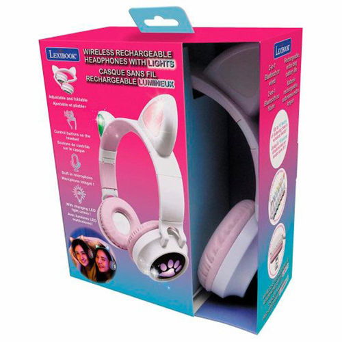 Auriculares Bluetooth Orejas de Gato y Luz Auriculares 2 en 1 para escuchar música sin cables a través de Bluetooth 5.0 o con el cable de audio (incluido). Un diseño súper bonito con orejas de gato y laterales que se iluminan cuando se encienden los auriculares.