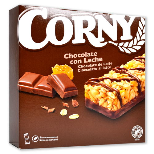 Nosotros también creemos que el chocolate es felicidad. Es por eso que la barrita de cereales Corny chocolate es la más popular. Una forma increíble de combinar lo mejor de los cereales y el chocolate.