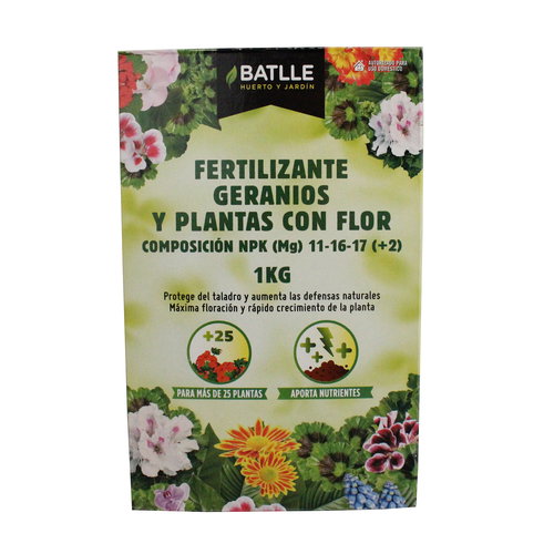 Es un abono granulado complejo, formulado con una equilibrada relación de nutrientes, que gracias a su alto contenido en fósforo maximiza la floración, tanto en número como en tamaño de las mismas. 1kg