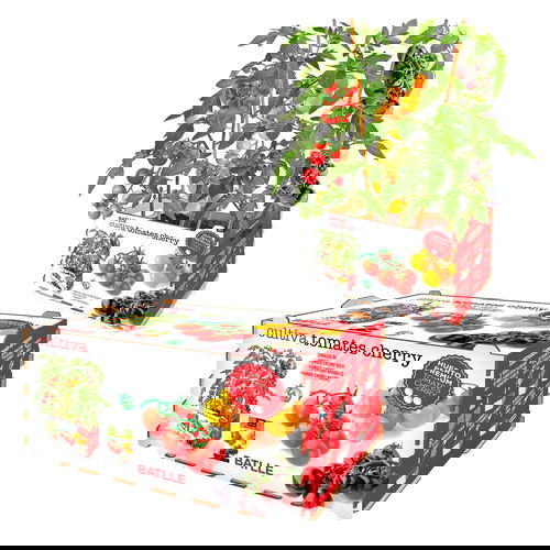 Contiene todo lo necesario para cultivar 3 variedades de Tomates Cherry: Rojos, amarillos y negros. Un ingrediente indispensable para poner color a tu huerto y a tus recetas.