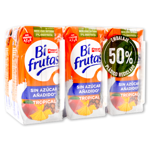 Bifrutas tropical Pascual sin azúcar paq. 6 u. de 200 ml
