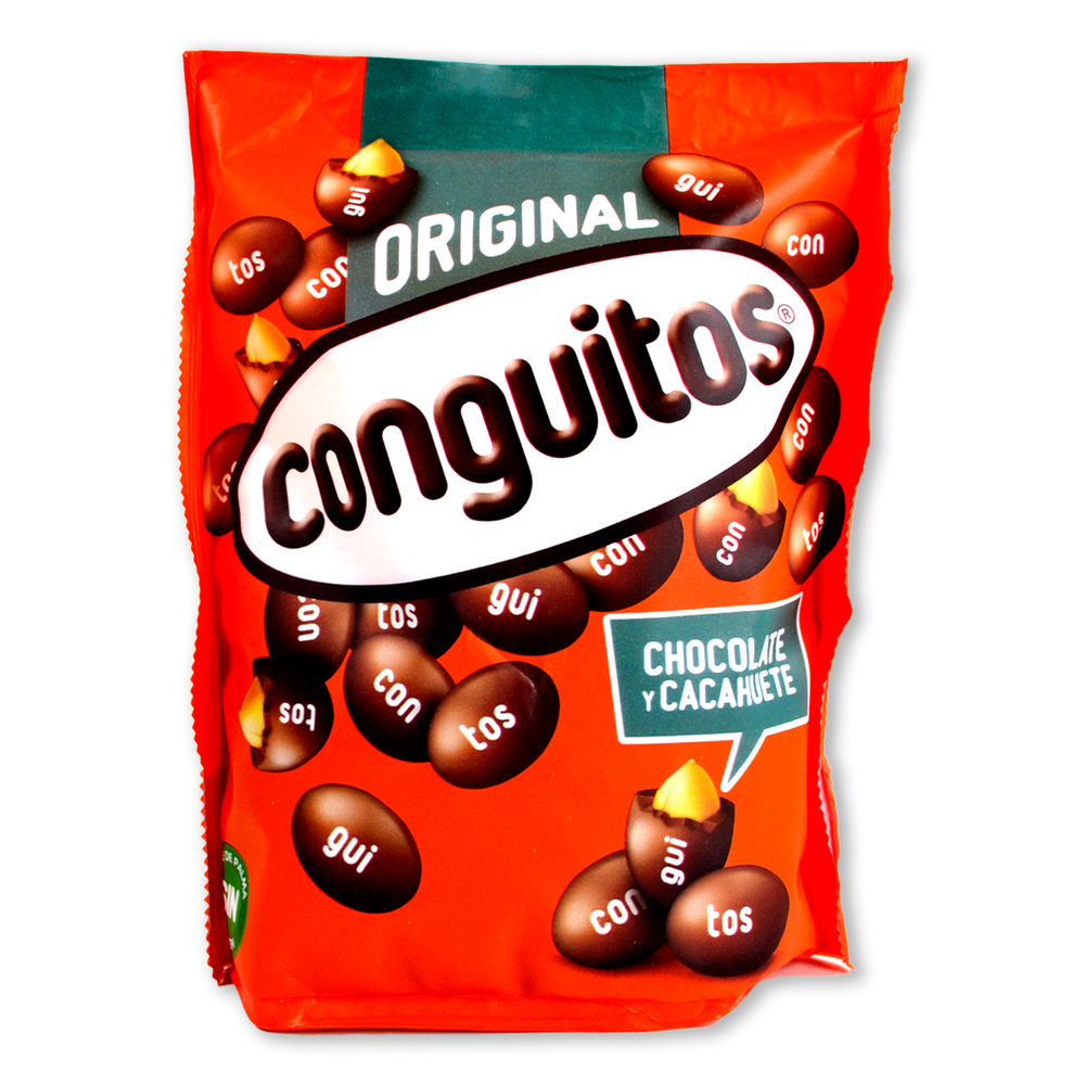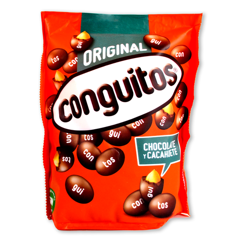 Chocolate (40%)(azúcar, pasta de cacao, manteca de cacao, LACTOSA, emulgente (lecitina de girasol) y aroma. Cacao 43% mínimo), CACAHUETE tostado (38%), azúcar, jarabe de glucosa, agentes de recubrimiento (E-414, E-904), colorante (E-172).Puede contener FRUTOS DE CÁSCARA, LECHE y SOJA.