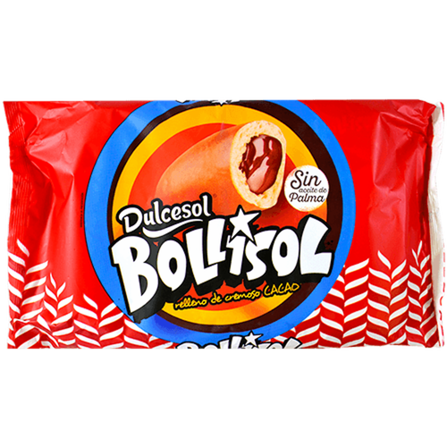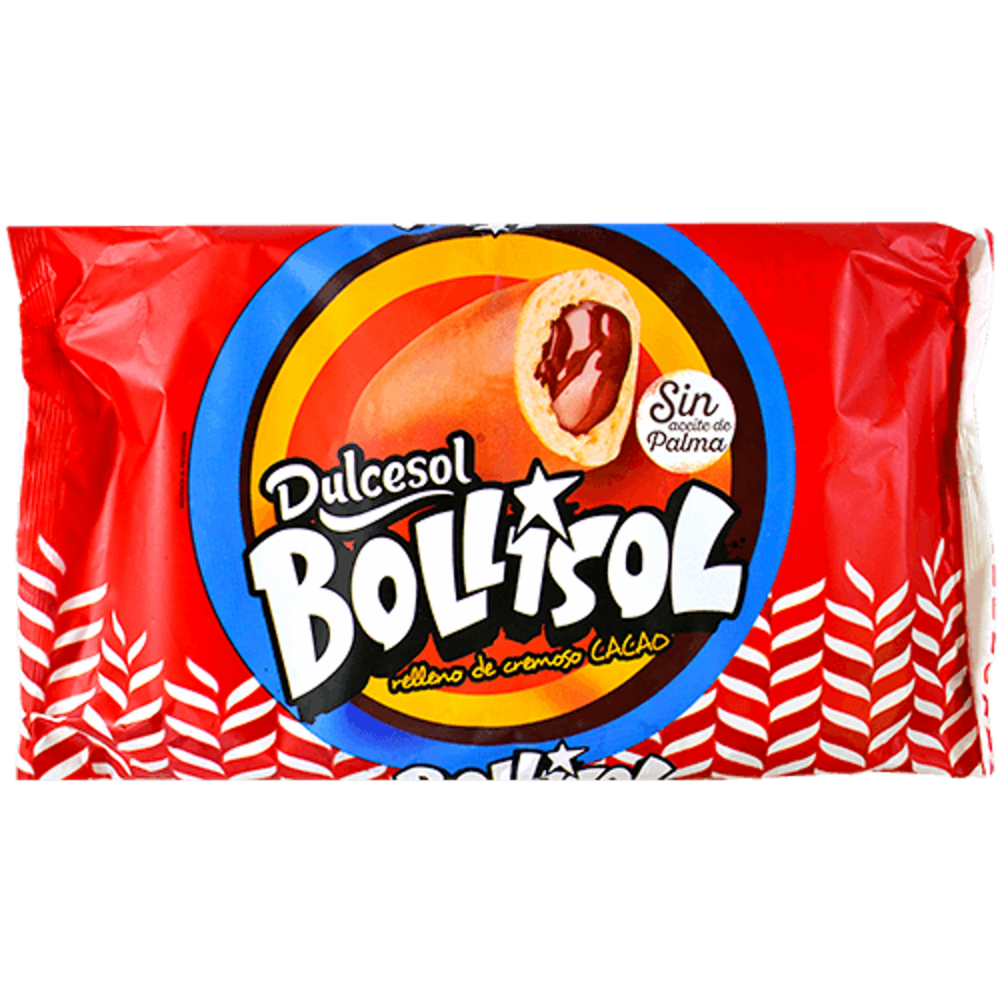 Producto de bollería. Bollisol relleno crema de cacao (30%).