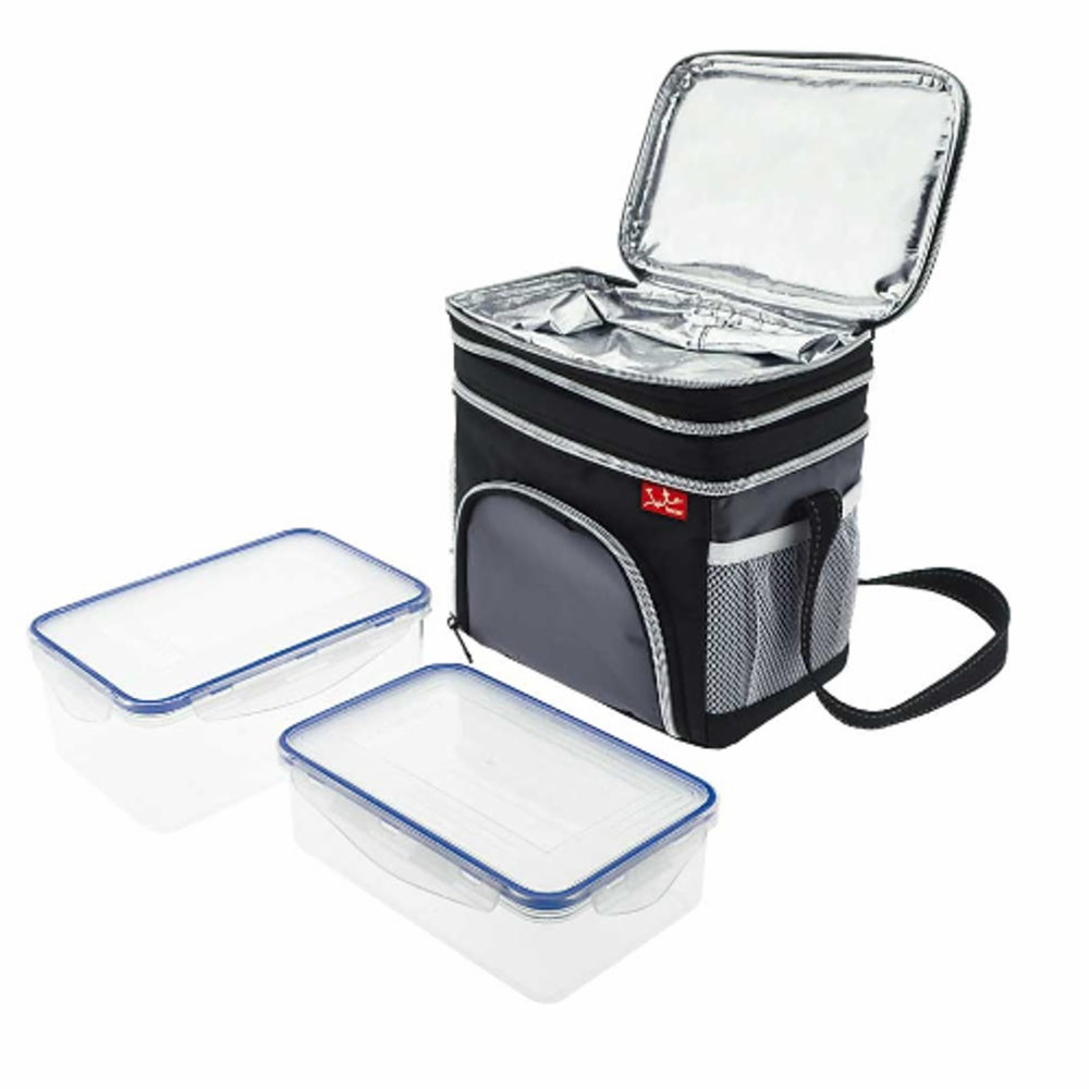 Bolsa porta alimentos de Jata de gran capacidad, extensible con más de 8 cm. Interior con material aislante Therma-Flect de fácil limpieza que permite guardar del calor.