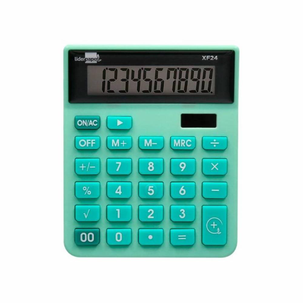 Calculadora de sobremesa de 10 dígitos. Teclas de plástico. Teclas de encendido y apagado. Tecla de raíz cuadrada. Porcentaje. Suma y resta de memoria.