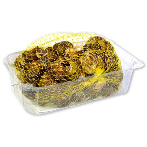 Variedad: Bové. El caracol, previamente purgado, está en estado de hibernación. La carne del caracol es muy nutritiva, sana y digerible, ya que cuenta con un alto contenido de proteínas y un bajo nivel de lípidos. Se consumen guisados o en la lata.