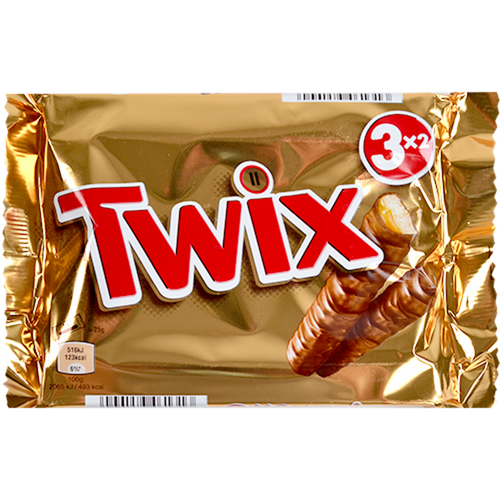 Caramelo (32%) y galleta (26%) cubiertos de chocolate con leche (35%)