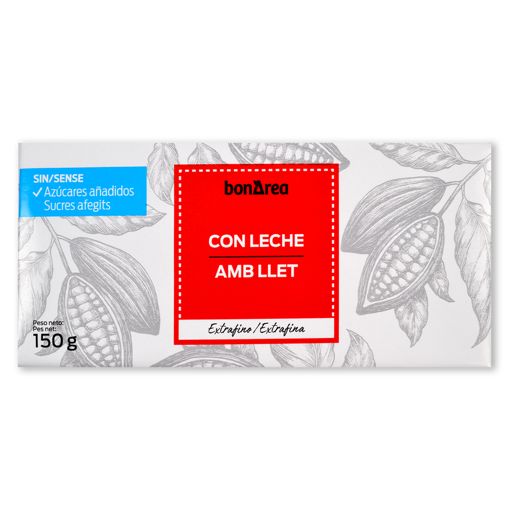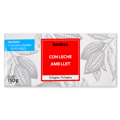 Chocolate extrafino con leche sin azúcares añadidos con edulcorantes. Presentado en tableta rectangular de 24 porciones. De sabor suave, cremoso y dulce típico del chocolate con leche. Ideal para desayunos y meriendas o para picar entre horas.