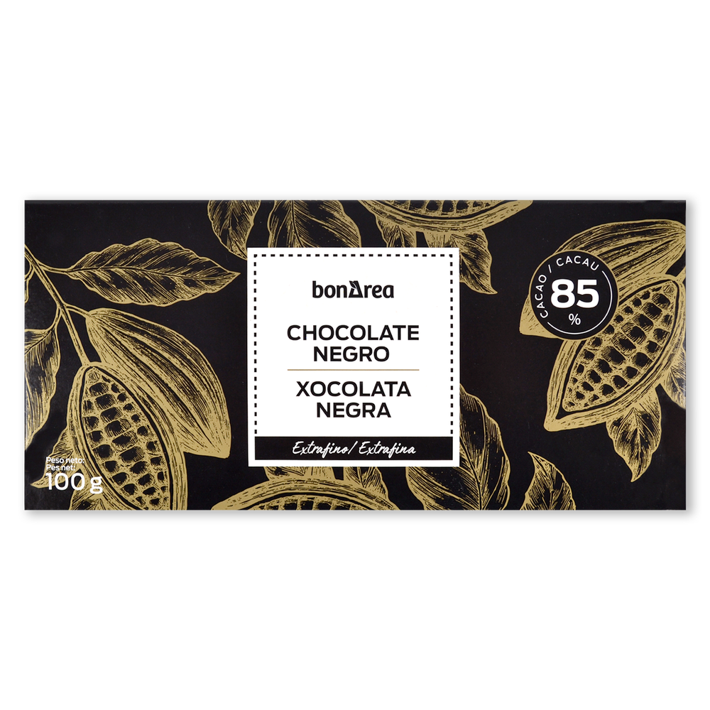 Chocolate negro 85% cacao presentado en tableta de 10 porciones. Para los amantes del chocolate intenso. De sabor básicamente amargo, con un punto de acidez y dulzor y con toques de vainilla. Ideal para desayunos y meriendas o para picar entre horas.