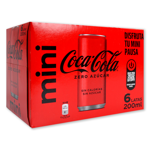 Nada como el sabor auténtico de una Coca-Cola Zero bien fría para hacer el momento todavía más especial. Con todo el sabor original de Coca-Cola, sin azúcar y sin calorías. En formato de 6 latas mini de 200 ml., es perfecto para esos momentos que te dedicas a ti mismo. Disfruta aún más tu Coca-Cola Zero, tomándola fría con mucho hielo y una rodaja de lima o limón. Envase de cartón y latas 100% reciclables.