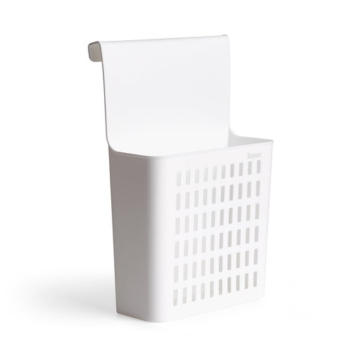 Colgador blanco para todo tipo de puertas que mide 36x24x10cm.