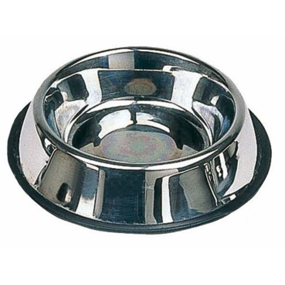 Platos de acero inoxidable con goma anti deslizante que permite que tu mascota pueda comer o beber cómodamente, manteniéndose el plato estable en el suelo. Puedes elegir entre sus diferentes tamaños diseño y colores según tu tipo de mascota.