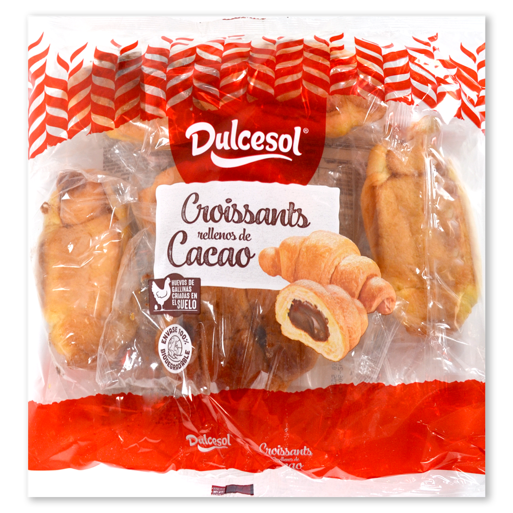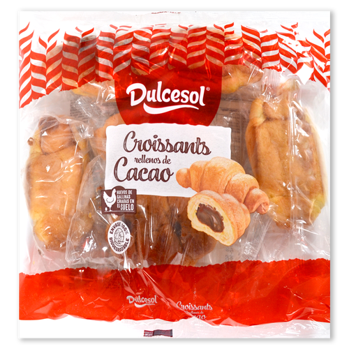 Harina de TRIGO, crema de cacao y AVELLANAS (29%) [azúcar, grasa de palma, suero de LECHE en polvo, cacao desgrasado en polvo (9%) (*), AVELLANAS (3%) (*), aroma y emulgente: lecitina de SOJA], grasa de palma, azúcar, aceites vegetales (girasol, soja) en proporción variable, dextrosa, suero de LECHE en polvo, yema de HUEVO (0.6%) (**), sal, levadura, emulgentes: E-471 y E-472e, conservadores: E-202 y E-282, aromas, proteínas de la LECHE, estabilizante: goma guar, colorante: carotenos y espesante: goma xantana. (*) % expresado respecto de la crema. (**) Huevos de gallinas sueltas en el gallinero. Puede contener trazas de MOSTAZA, GRANOS DE SÉSAMO, otros FRUTOS DE CÁSCARA y/o productos derivados.