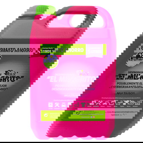 Desengrasante el Milagrito es un limpiador multiusos que disuelve la grasa más difícil sobre la gran mayoría de superficies. Además, es un quitamanchas eficaz, que sobre tejidos de colores sólidos no hay mancha que se le resista.