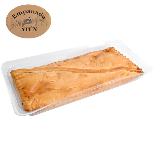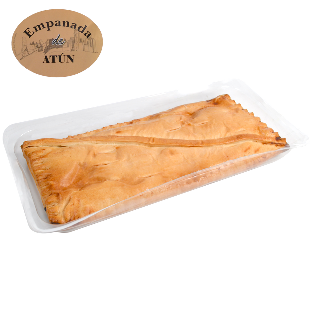 Empanada gallega de atún es una delicia tradicional que se presenta lista para calentar. Esta empanada es perfecta para una comida rápida o para compartir en reuniones.