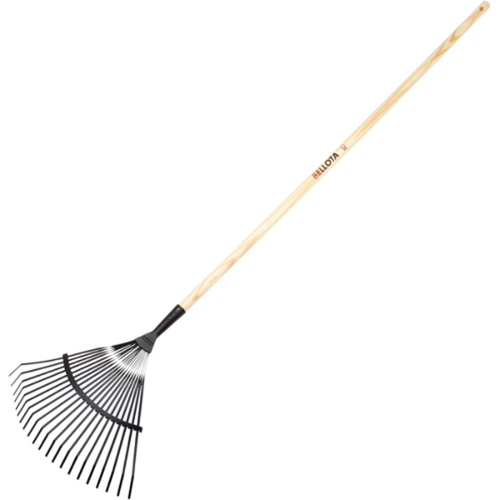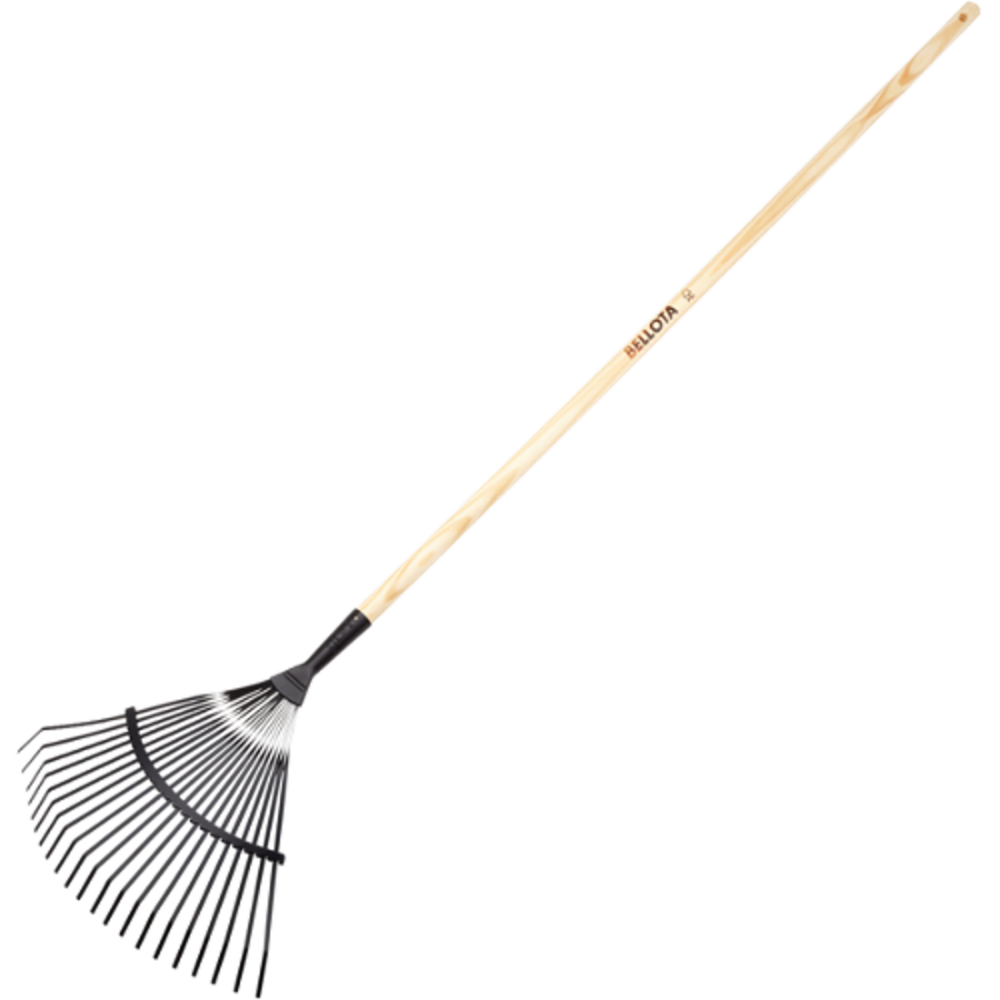 Escoba de jardín, con mango de madera FSC, con púas planas de acero resistente para limpieza del césped.