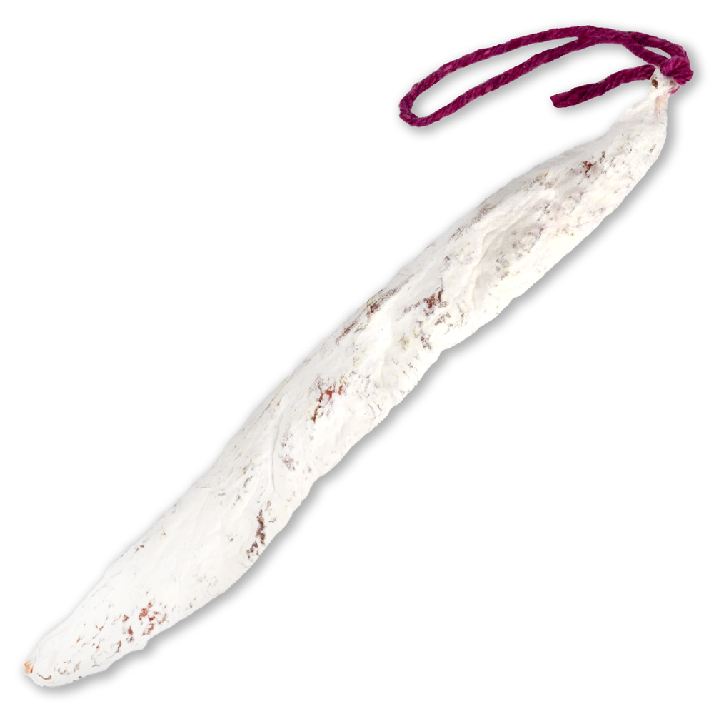 Producto curado elaborado con carne de pavo y cerdo, y embutidos con tripa natural, con cobertura de la flora que aporta el aspecto y sabor típico al producto. Ideal para cortar al gusto y añadir en bocadillos, entremeses o aperitivos.