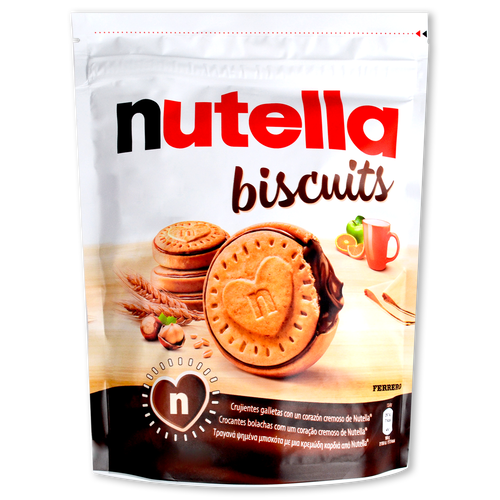 Crema para untar de avellanas y cacao 40% (azúcar, manteca de palma, avellanas (13%), leche desnatada en polvo (8,7%), cacao desgrasado (7,4%), emulgentes: lecitinas (soja), vainillina), harina de trigo (32,5%), grasas vegetales (palma, palmiste), azúcar de caña (contiene trigo) (8,5%), lactosa, salvado de trigo, leche entera en polvo, extracto en polvo de malta de cebada y maíz, miel, gasificantes (difosfato disódico, carbonato ácido de sodio, carbonato ácido de amonio), cacao desgrasado, sal, almidón de trigo, harina de cebada malteada, emulsionantes: lecitinas (soja), vainillina. EXTRA EU: Naranjas. CONTACTO CRUZADO: gluten (espelta, centeno, avena, khorassan).Apto para vegetarianos ovolácteos. No apto para veganos.