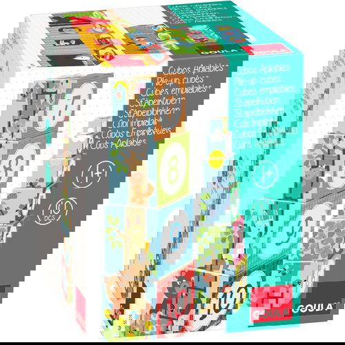 Los niños se divertirán colocando los cubos de mayor a menor en vertical y encontrarán los mismos animales en diferentes ambientes: en una casita, en un árbol. Juego de equilibrio ya que cada cubo tiene distintos tamaños y tendrán que aprender a colocarlos para que no se caigan Edad recomendada +1 años.