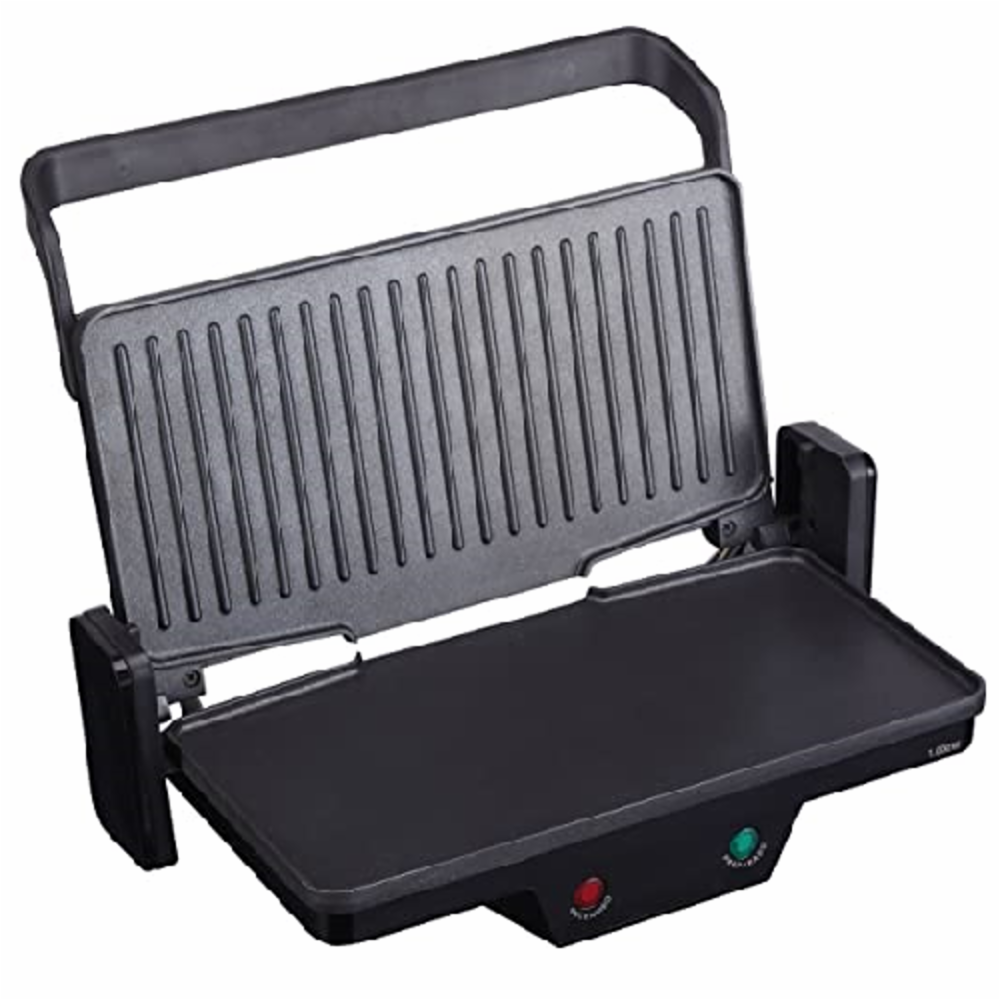 El grill 3 en 1 cuenta con una superficie plana y otra rayada para facilitar el dorado de todo tipo de carnes y pescados, se puede usar como plancha de asar, grill o sandwichera.