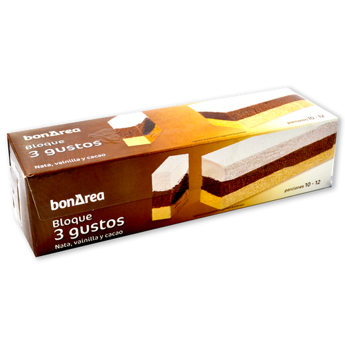 Helado de nata, chocolate y vainilla. Para elaborar cortes de helado o combinarlos con frutas u otros postres. Delicioso refresco para los calurosos días de verano y unos atractivos postres para el invierno.