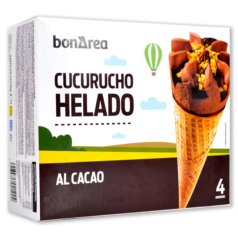 En cada envase hay 4 unidades de 125 ml de helado de chocolate y cacao con crujiente cucurucho de galleta. Delicioso refresco para los calurosos días de verano y unos atractivos postres para el invierno.