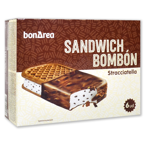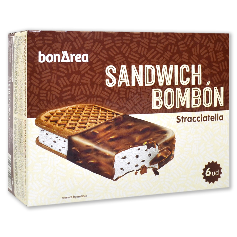Helado sándwich bombón straccictella paq. 6 u.