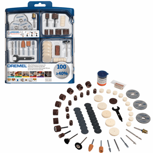 El juego de accesorios multiusos Dremel de 150 piezas incluye 150 accesorios originales de alta calidad entre los que se incluyen accesorios EZ SpeedClic, que permiten un cambio sencillo y rpido. Con este juego de accesorios podr llevar a cabo infinidad de proyectos y aplicaciones en diversos materiales. El maletn de almacenaje le permitir guardar cmodamente todos sus accesorios Dremel.
