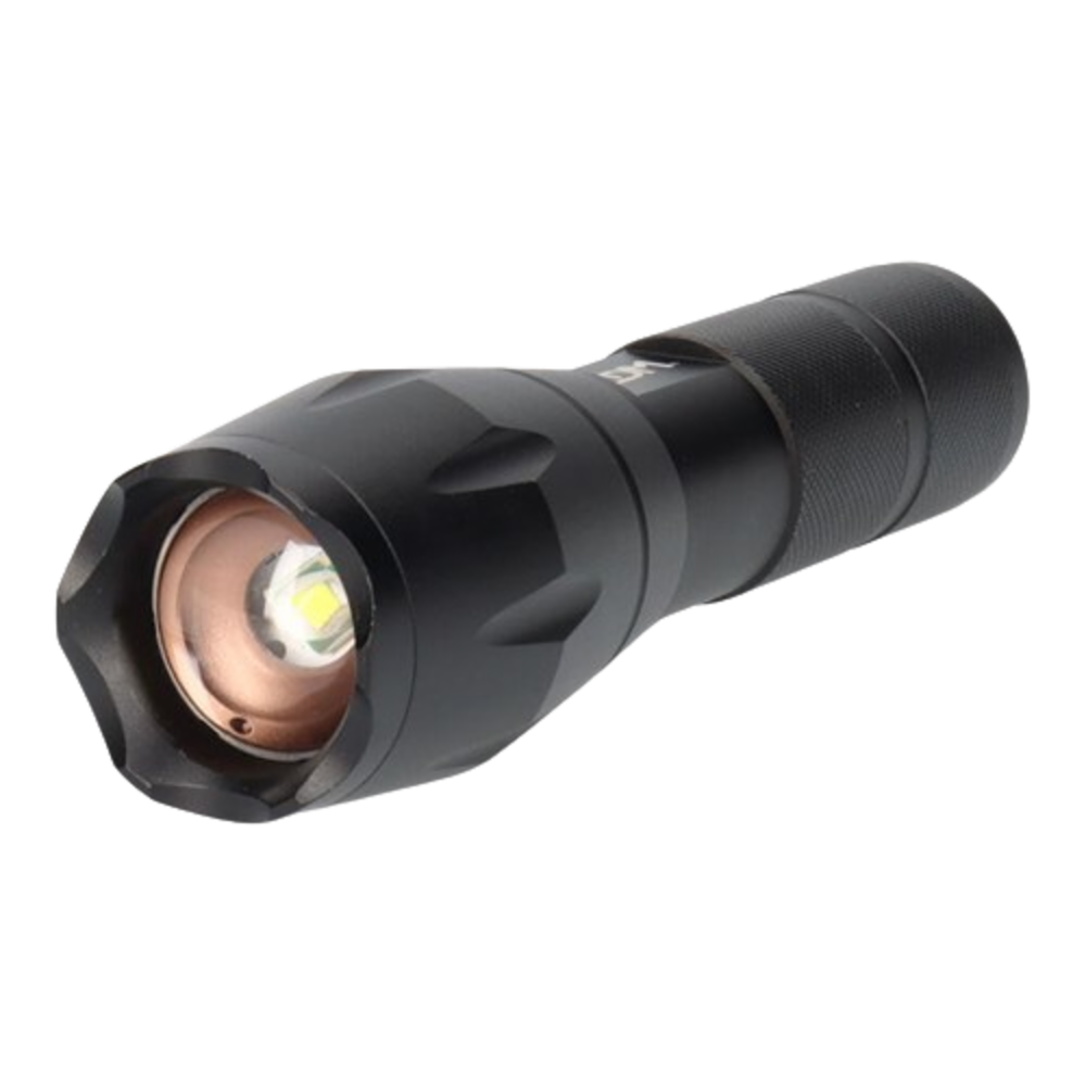 Linterna de aluminio con zoom. 1 led 3 x AAA (Pilas incluidas).
