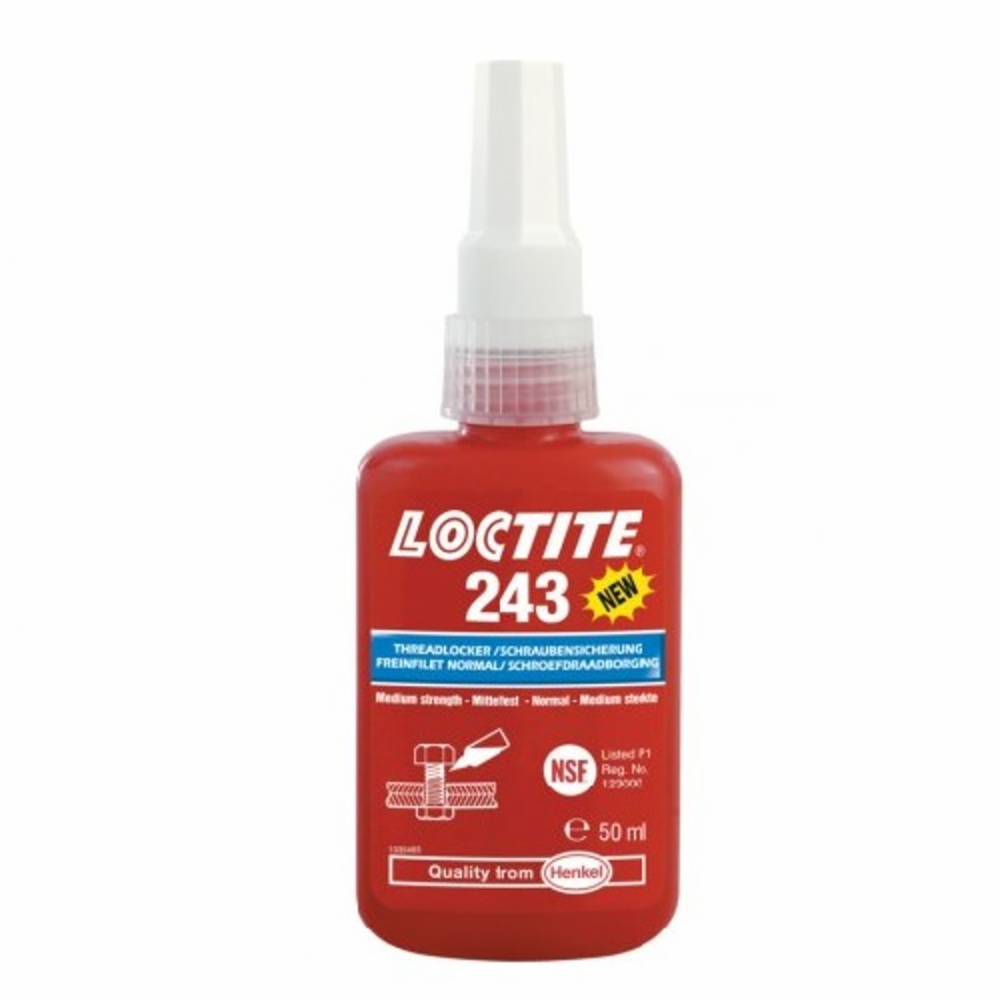 LOCTITE 243 50 ml fijador de roscas de resistencia media. Adecuado para todos los metales, incluidos sustratos pasivos (por ejemplo, acero inoxidable, aluminio, superficies galvanizadas). Tolera contaminaciones ligeras de aceites industriales, por ejemplo, aceites de motores, aceites anticorrosion y fluidos de corte.